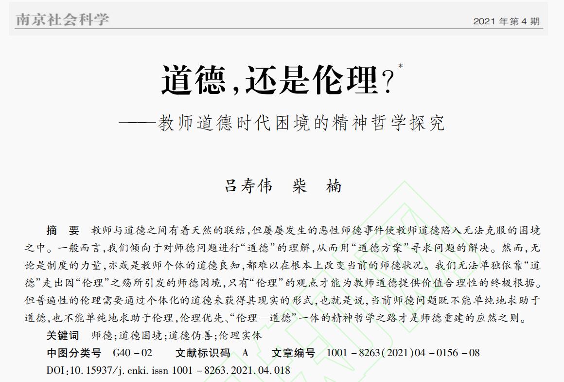 上一条:吕寿伟,柴楠. 道德,还是伦理? 教师道德时代困境的精神哲学探究 下一条:课程思政评价的设计与实施