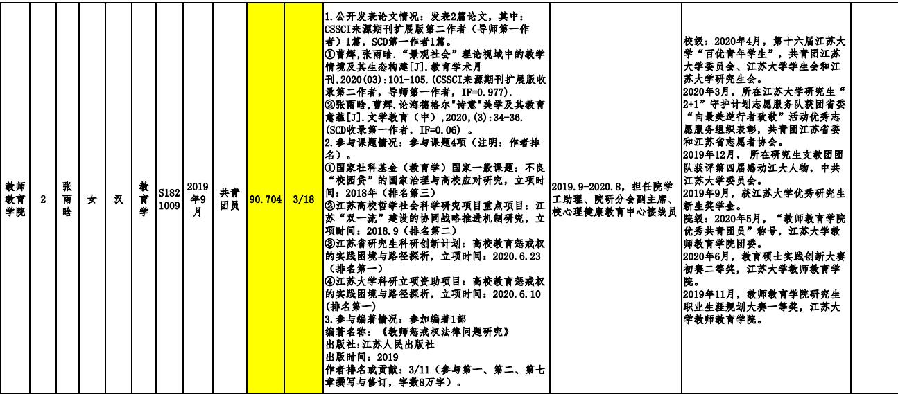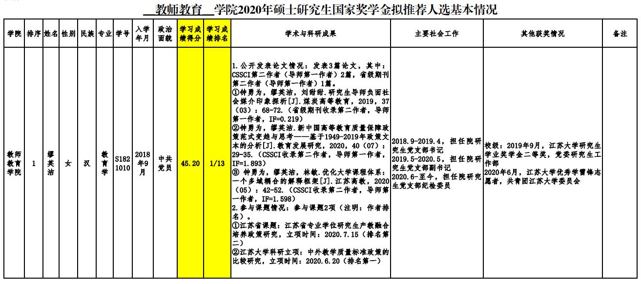 经个人申请,综合答辩,学院研究生国家奖学金评审工作小组审定,确定缪英洁、张雨晗同学为海角网 2020年研究生国家奖学金推荐人选,倪梦娟同学为备选推荐人选,详细见附件。公示期为10月9日-10月14日。若对公示名单有异议,请于公示期内与海角网 行政办公室联系,联系电话:0511-88790665,地址:三江楼1805。