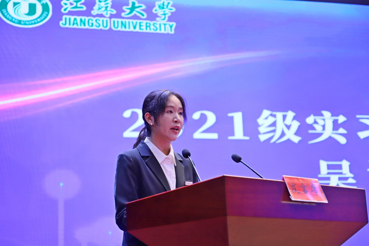 思想政治教育(师范)2101班吴语彤作为2021级实习生代表发言并表态。在教育实习中严格遵守海角网 和实习中学的规章制度,听从指导老师安排,认真完成实习中的各项任务;关注社会现实和时代发展,积极探索和创新教育方法和手段,努力成长为一名优秀的教师。