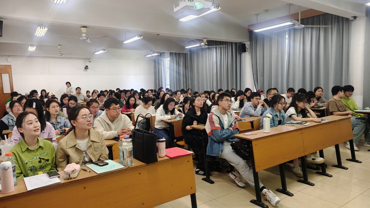 动员会分两个阶段。第一阶段,李霞作 “教育实习行前教育”宣讲。她从教育实习安排、纪律、考核和材料提交四方面对全体师范生做了具体讲解和指导。毛艳枫从实习期间工作纪律、人际交往和校友邦实习系统使用等方面对与会学生提出明确要求。指导教师代表王翔副教授强调了教育实习对提升师范生教学能力的重要性,希望师范生珍惜实习机会,努力提升自身教学素养。