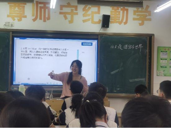 华南初级中学校长吴云、副校长汤磊磊、教务主任王佳和全体实习生参加调研座谈会。33名实习生逐一分享实习期间的成长和收获,数学师范专业的胡智敏说,通过听课、集体备课、教学研讨和讲课,深刻理解了要从学生的角度去思考如何备课和开展教学。