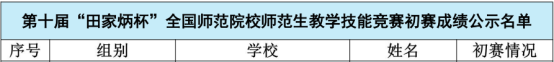 第十届“田家炳杯”全国师范院校师范生教学技能竞赛初赛结果公示