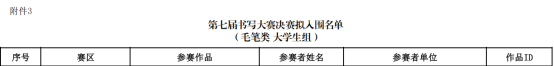 关于第七届中华经典诵写讲大赛“笔墨中国”汉字书写大赛拟入围决赛名单的公示