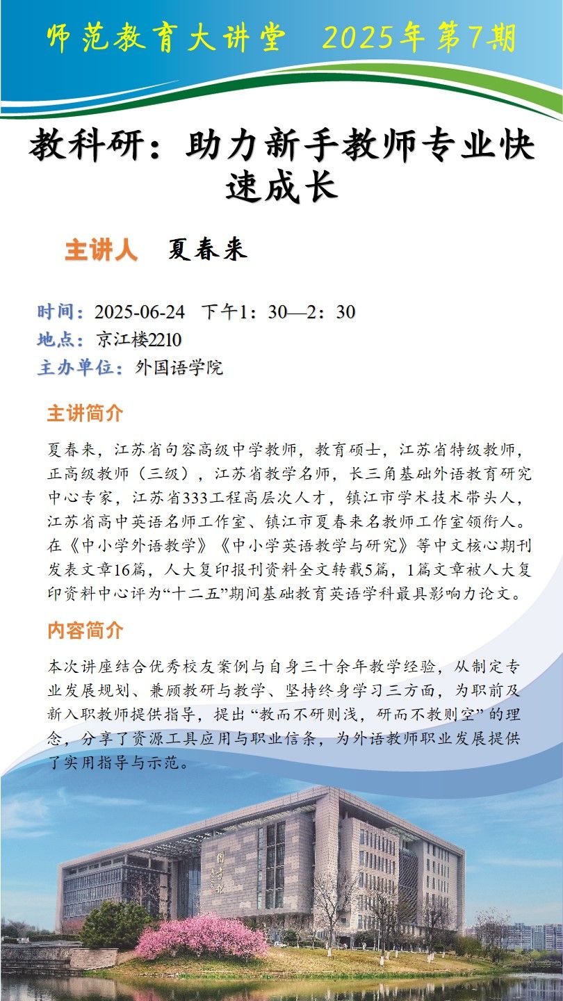 上一条:【师范教育大讲堂】江苏省句容高级中学夏春来应邀为学院师生开展讲座 下一条:2025年教育实习优秀指导教师风采展